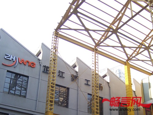 在同乐坊老工厂的改建中,还保留了人字型和众字型屋顶。所谓的“人字形”屋顶,其实是建筑上的三角形桁架。由于三角形桁架受力均衡,结构简单,适合大跨度建筑,所以被广泛用于厂房建筑中。 “众字形”屋顶的形成,是因为在屋顶上加开了侧天窗的原因,侧天窗可以有效地采光又防止雨水渗漏,在发生火灾的情况下还有排烟作用,所以也被广泛用于厂房建筑中,制作上是在“人字形”三角形桁架上再加一个小的三角形。