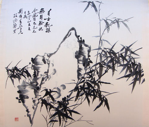 绣品《竹石图》