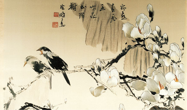 绣品《玉兰小鸟》