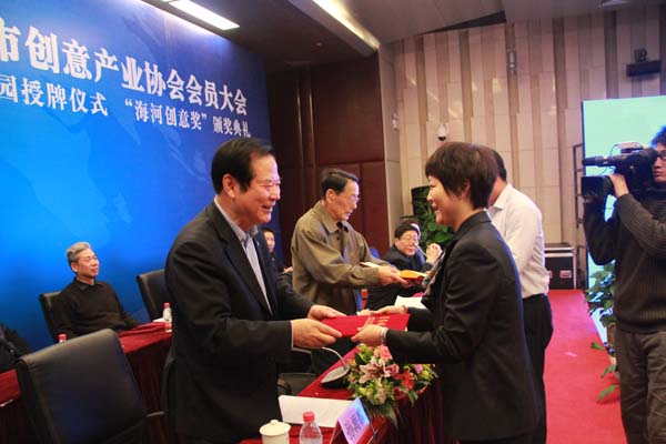 会上,协会副会长孙敬忠向大会介绍了“海河创意奖”推荐评选过程并宣布获奖者名单,并由市发改委管理年主任和天津市创意产业协会领导为获奖的22家(名)园区、企业和个人颁奖。