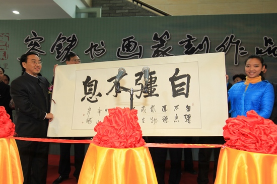 容铁书法作品《自强不息》赠送给家乡残疾人联合会