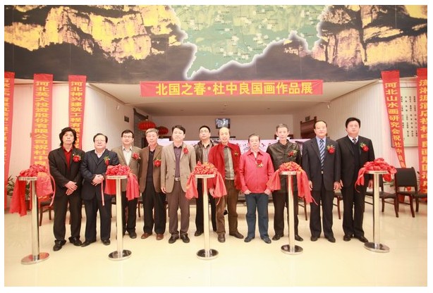 2013年4月13日上午,“北国之春•杜中良国画作品展”在河北石家庄市博物馆拉开帷幕,中共中央办公厅王关山,原山东省委办公厅主任任培金,原河北省军区政委汪潮海,纪晓岚纪念馆馆长李新永,河北省委宣传部部长秘书吴中华,中国孔子国画院名誉院长袁军,河北潇湘源酒店总经理周建军,石家庄护盾建筑装饰工程有限公司总经理王总,河北神兴建筑工程有限公司董事长王金龙,河北画院党总书记李增民,河北美术家协会学术委员会主任李维世,石家庄公安局新华分局副局长曹文平,河北英大投资股份有限公司董事长李志强,北京圣金源幕墙装饰工程有限公司董事长李志刚,河北英大投资股份有限公司总经理陈利鹏,江西国新建筑工程有限公司董事长杨海财,锦绣绿美商贸有限公司董事长刘德清,北京阳光华瀚测绘有限公司董事长桂晨东,北京永利信丰房地产开发有限公司董事王春生,河北山水画研究会副会长孟兵等,以及来自北京、山东、河北等地的企业家、艺术家等二百余嘉宾参加开幕式并参观展览。