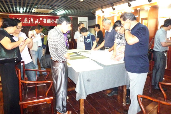 展览同时还展出由无锡市诗词协会、碧山吟社十位书画家共同创作的诗书画册页供参观者欣赏,参观者在雅集活动中品茗赏诗书画,与作者切磋交流,其乐融融。展览当天百余人参加了雅集活动,小品展览将为期一个月。 (诗讯)