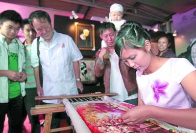 除仿冒外,以次充好也是个别绣坊老板的生财之道。“比如先用电脑喷绘出图样,然后拿去朝鲜、东南亚那些人工便宜的地方去绣;还有的在当地找一些水平不高的人,简单在机器喷涂的颜色上盖过几针,拿去卖。”工艺美术学家杨坚平近年来因写作《中国刺绣》一书,奔走于全国各地考察。