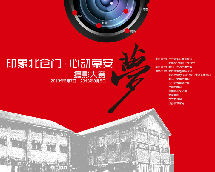 即日起至7月25日,全国摄影爱好者、微博博友可以在微博上传照片,或发送照片至邮箱149813910@qq.com。活动具体详情见新浪微博@崇安发布@无锡北仓门生活艺术中心,http://event.weibo.com/903596。