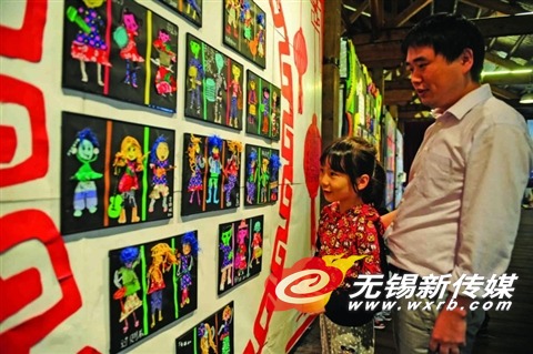 10月1日,“记录孩子的成长”2014年大型少儿艺术展在无锡北仓门艺术中心开展。本次展览由无锡北仓门生活艺术中心、四季童话少儿美术工作室主办。展览以孩子的成长为脉络,结合了作品观赏和活动体验的双重形式,是一次融合了绘画、阅读、摄影等形式的多维度儿童艺术展。(陈大春 摄)