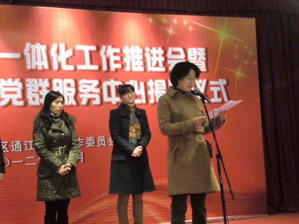 为推进通江街道党群一体化工作,街道在北仓门生活艺术中心成立“通江街道北仓门创业人才服务中心”,区委组织部副部长袁晓宁为中心揭牌。随后北仓门生活艺术中心董事长郑皓华,任洁书记,袁晓宁部长分别发表重要讲话。