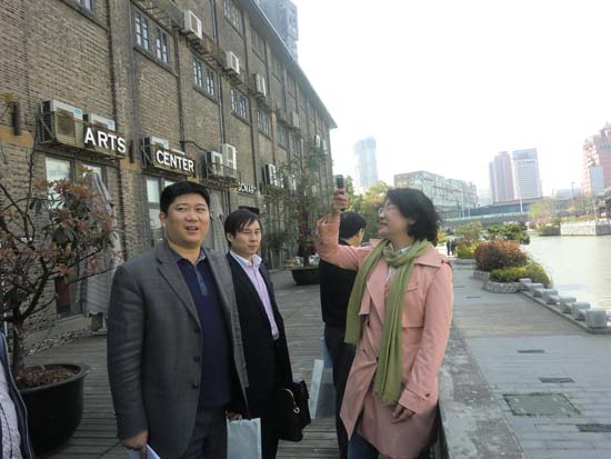 在无锡市文化创意产业协会会长,北仓门生活艺术中心董事长郑皓华女士陪同下,常州文化创意界人士参观了徐诚一雕塑工作室,北仓门原创刺绣工作室,北仓门创意剧场,北仓门紫砂馆等。