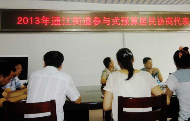 2013年8月21日,“2013通江街道参与式预算居民协商代表会”在通江街道办事处会议室举行,会议街道所辖四个社区关系居民的文化公益投资项目开展民主协商。表决通过长庆路社区的“夕阳红”特色文化工作室项目,老戏馆弄社区的“老友记”活动空间项目,金河湾社区青少年活动空间项目等。