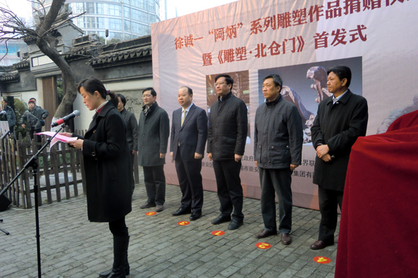 崇安区委常委、宣传部长周皖红,雕塑家徐诚一,北仓门生活艺术中心董事长郑皓华,市文联主席刘基平先后发言,崇安区人民政府副区长夏琰主持捐赠活动和式。