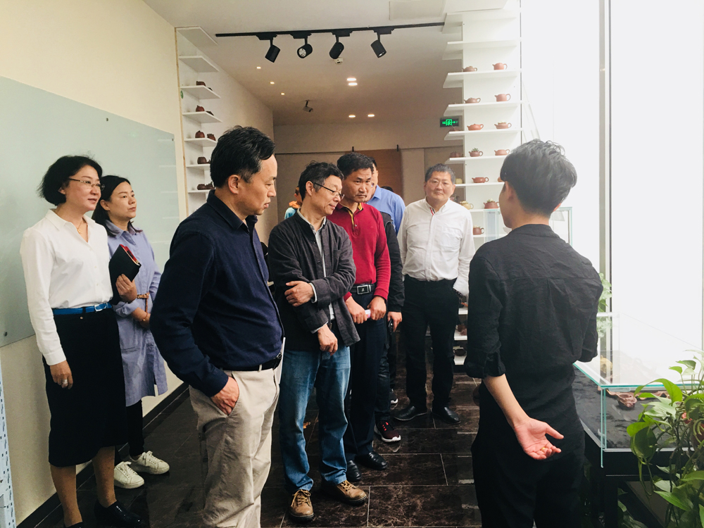 亳州考察调研团先后参观了“北仓门文创设计生活周”艺术展览现场,参观了浚·艺术珠宝工作室,慢·画廊,竹炉茶房、北仓门剧场等园区重点工作室与文创企业。在慢·画廊,张主席和台湾画家黄源勇就两岸艺术交流作了深入的沟通和交流,欢迎台湾艺术家可以到历史文化名城——亳州进行文化艺术交流与合作。在竹炉茶房,张主席认真听取了该公司负责人关于企业运营模式及运营方向的介绍:竹炉茶房是一家年轻的企业,采用85后经营、90后管理、95后执行的运作模式。竹炉茶房重点挖掘民间茶类业态实力匠人,矩阵式孵化个人IP运作工作室品牌,传播匠人的作品,为海内外茶文化爱好者打造高品质交流通道,组建茶席器具、茶叶等学习平台。