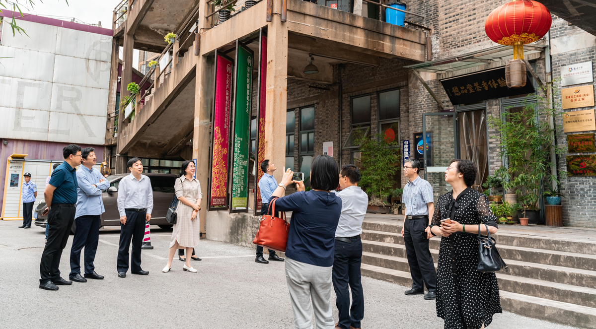 代表团走进北仓门文化创意产业园,参观了即将举办的“江南盛地”2020无锡雕塑展,听取了北仓门关于雕塑发展和本届雕塑展筹备情况的介绍。