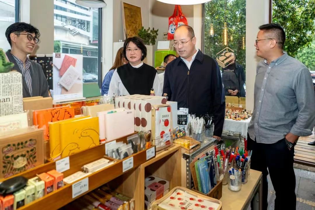 朱刚听取了北仓门蚕丝仓库等工业遗存的修复和改造情况,并走进吕邵苍设计集团、运·咖啡、本子事多文创文具店等园区内的文创企业和工作室,与企业负责人深入交流,了解园区文化产业集聚和发展情况。