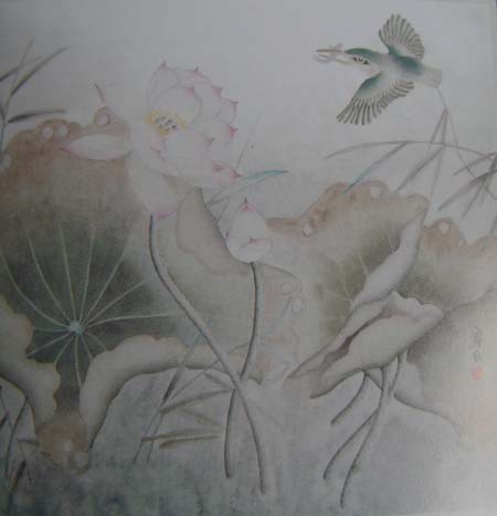 她学画的起点很高,儿时就师从著名画家张正吟,后又随陆越子教授习画,在他们引导下,坚持到大自然中去观察,研究花理、花性、花趣,她以女性特有的细腻感悟自然、感悟生命,与花鸟鱼虫对话、交流,从而真正溶入了花鸟鱼虫的世界,如同庒周梦蝶,不知道自己是蝶还是庒周。所以她的画不是老师作品的简单重复,而是倾注她感情、感悟的人生副本。白石老人说:“学我者生似我者死”,只有把前辈的技法灵活运用,才能形成自己的风貌,才能跟随时代步伐。