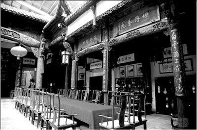 坦博艺苑所在的徽州大祠堂,诞生于明朝万历年间。坦博艺术中心主人在安徽买下这座祠堂后,组建专业的施工队伍把它分拆“搬家”至北京,每一个零件都经过认真标号,分头组装,恢复原貌,连屋顶的破旧瓦片,都复建在原来的位置上,保持了徽州祠堂的古典原风原味。