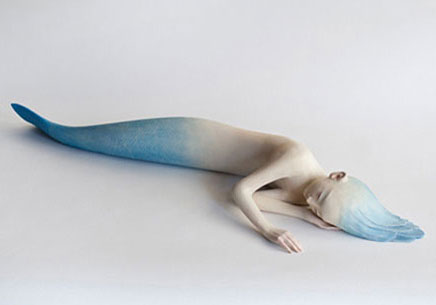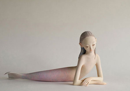 日本雕塑家木雕作品:美人鱼清丽优雅