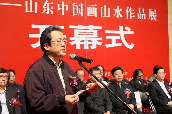 中国文学艺术基金会理事长胡振民,中国文联党组成员、副主席、中国美协副主席冯远,中国演出家协会主席李牧,中宣部文艺局副局长汤恒,中国文联办公厅主任夏朝华,中国画院常务副院长卢禹舜,中国美术家协会秘书长刘健,中国美术馆副馆长马书林,博物馆副馆长陈履生,中国友联画院常务副院长李荣海;山东省委宣传部副部长刘为民,山东省文联党组书记于钦彦,山东省文联副主席、省美协主席张志民,山东省美协常务副主席、山东画院院长孔维克,山东省文联党组成员、纪检组长矫红,山东省文联名誉主席、省美协名誉主席刘宝纯,山东省美协驻会副主席朱全增,以及刘曦林、刘龙庭、王镛、赵力忠等美术界专家,北京九州保兴科技有限公司董事长李宝刚等企业界知名人士出席了开幕式。山西省美协原主席崔俊恒、吉林省美协常务副主席唐明珍等来自各省市美协负责人、在京部分美术家及山东美协主席团成员和参展作者也参加了开幕式。