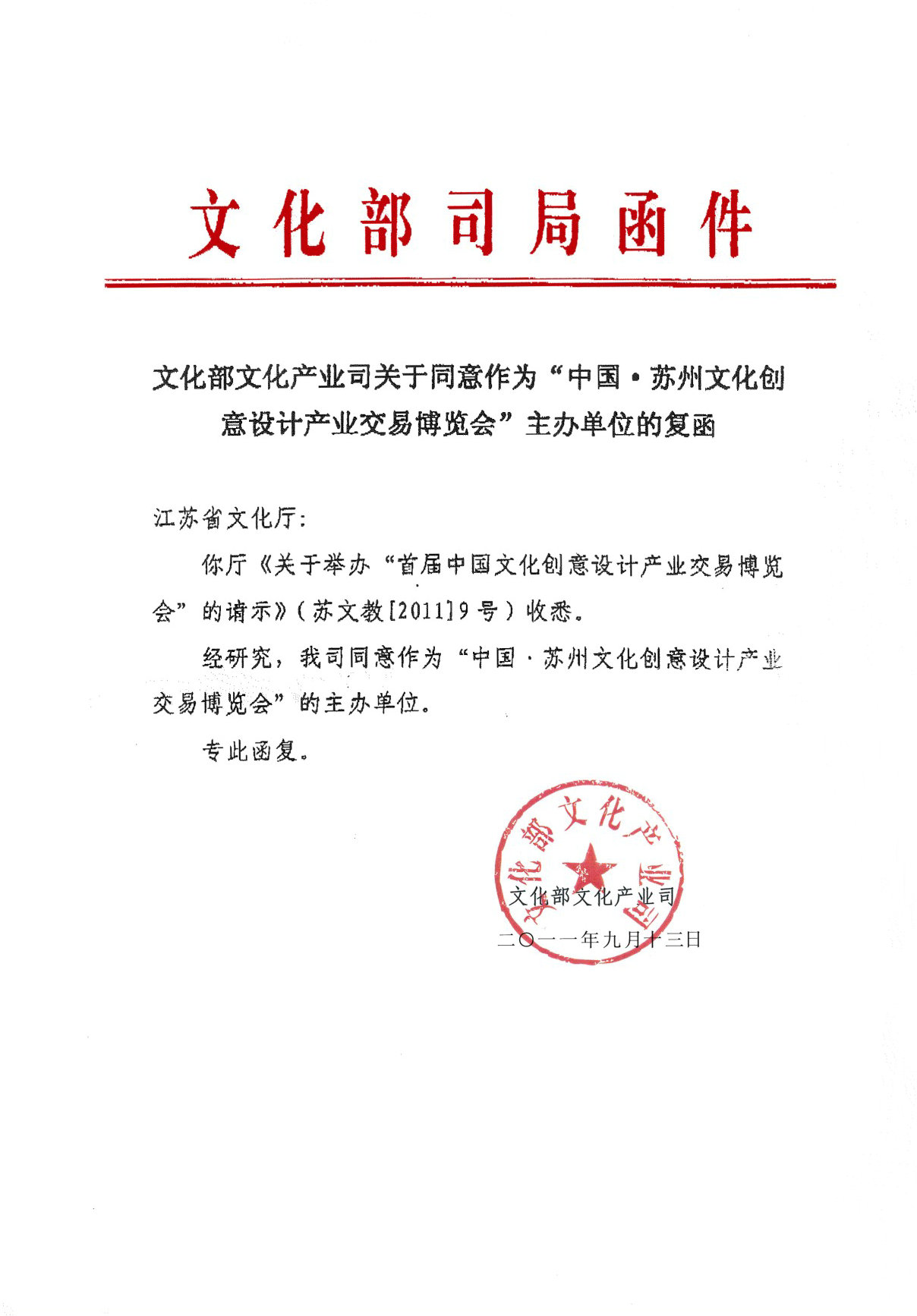 1月4日讯 由中华人民共和国文化部文化产业司、江苏省文化厅、苏州市人民政府共同主办的首届“中国·苏州文化创意设计产业交易博览会”将于2012年4月28日--30日在苏州国际博览中心举行。