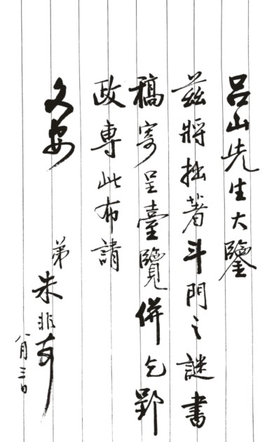 朱非,绍兴人,1945年六月生。自幼爱好书法,临池不缀。楷学欧,行学二王、赵,偶涉汉隶北碑,主擅行
