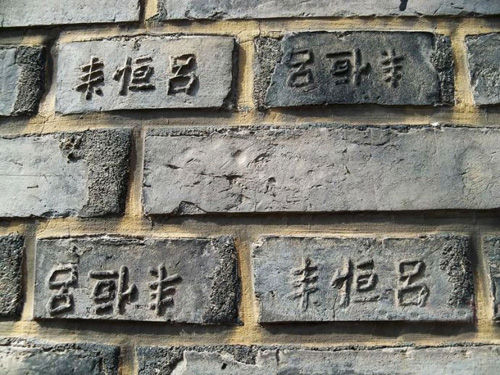 墙砖上的字为窑款,意为窑名或砖的品牌,此类砖已难得一见了。