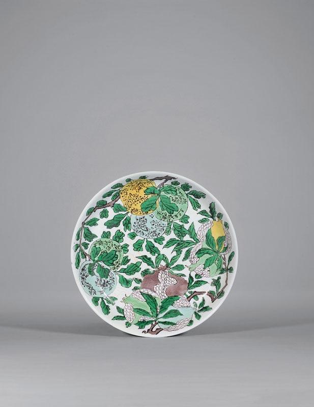 清康熙 素三彩花果暗刻龙纹盘