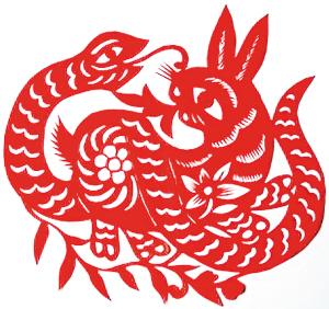 蛇盘兔(剪纸)