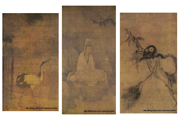 牧溪法师《观音猿鹤图》