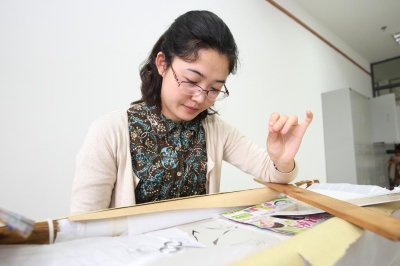 一个是北京经贸职业学院航空服务与英语专业,一个是苏州工艺美院产品设计专业,虽然所学专业与刺绣似乎关系不大,但两个小姑娘却学得得心应手。她们的师傅曹忠解释,因为扬州刺绣的特殊取材,也对刺绣者提出更高要求在刺绣前要先读懂名人字画,才能在绣时做到绣与画的完美统一,成为一件富有立体质感的精美艺术品。“正因为她们是大学生,拥有比一般绣娘对字画更强的领悟性,也更能表现出那种意境。”曹忠说。