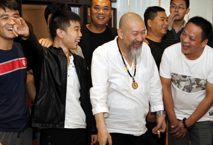 10月8日,吴德昇(中)和徒弟们在一起。