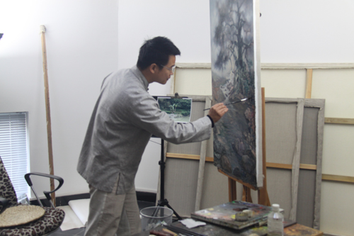 方宋老师在工作室作画