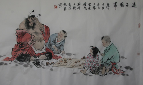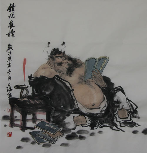 凤凰网:我看您的画里面,因为我们比较年轻,可能对这个理解的不是特别深。原先我们可能认为钟馗是一个保护神,包括可以去捉鬼之类的。但我看到您的画里面,还出现了一些跟小孩在一块玩,还有他在打盹儿、扇扇子这样的一些作品,您能详细地叙述一下这个里面您的一些创新,或者继承的东西吗?