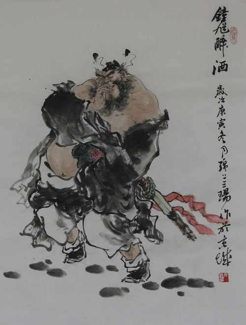 那么钟馗画主要是2010年在石家庄,我搞了一个个人画展,在画展同时展出几幅小幅的画,那时候画山水画累了,画一画人物。那么画人物,我特别喜欢钟馗这个人物,他那种张力、那种表现,笔墨各方面的表现非常喜欢,画了几幅小幅的钟馗,展出了。没想到这几幅小钟馗,却博得了当地的有关专家人士的喜欢和爱好,大家一致地劝我,一致地给我推荐,更多的去搞一些钟馗画的创作。所以说2010年、2011年一直到现在,更多的时间投入到钟馗画的创作当中。